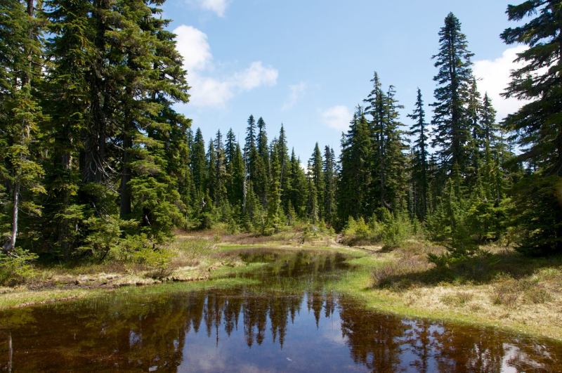 I didn’t quite realize how long the drive from Seattle would be, as you have to drive all the way down to Portland, trace the Columbia River, and then drive straight up along Forest Road 30 (the “wind river highway”) for a little over an hour. This gets you to the Thomas Lake Trailhead, where you leave your car behind and start hiking. A mile or so down the trail you enter the wilderness area. The area is very accessible and does not take much effort at all – since the road drops you off in the middle of dense forest, you can find pretty lakes as quickly as half a mile from the trailhead.