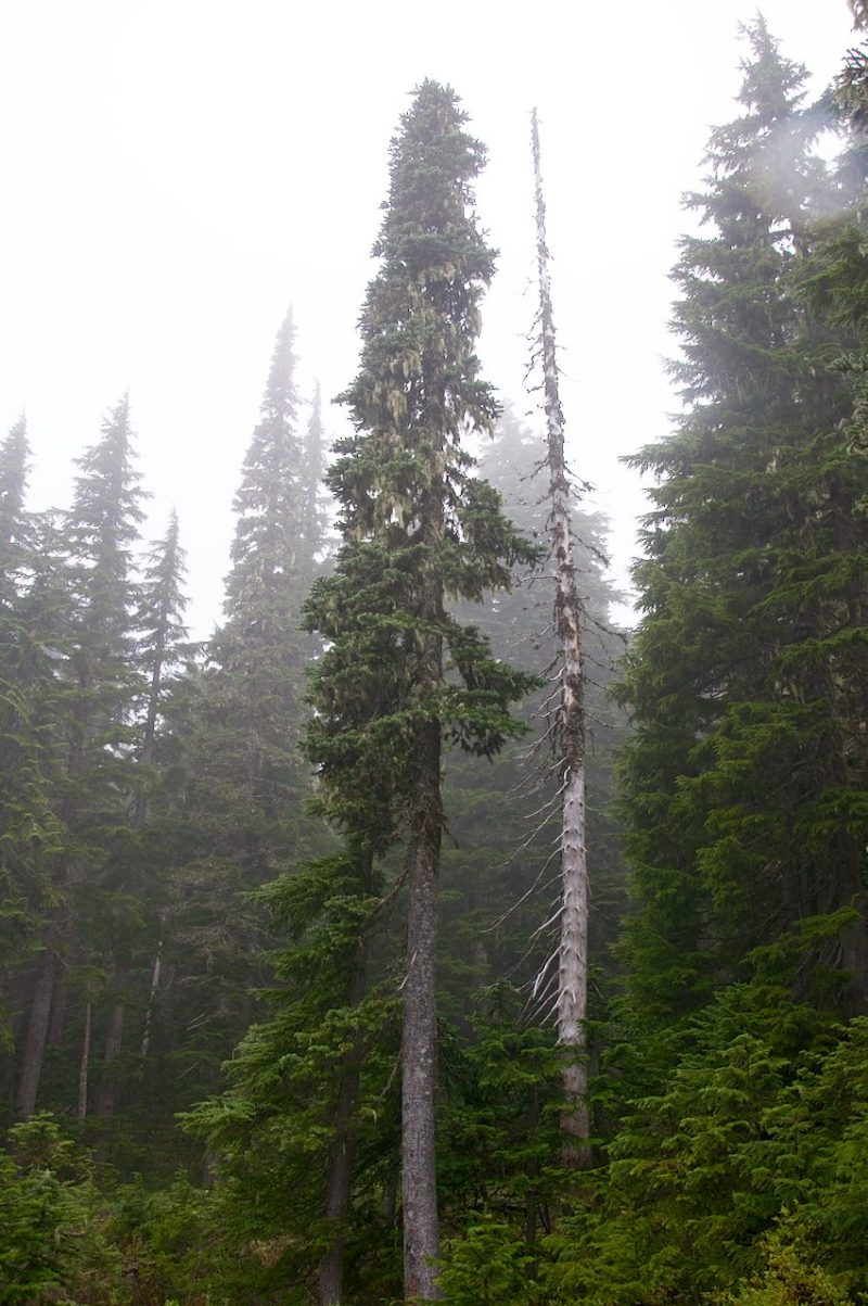The trees in the wilderness are definitely not unusual for the Pacific Northwest. Due to its altitude at about 4000-6000 feet, the dominant species are all large firs, in particular the Pacific silver, Noble and Subalpine/Rocky Mountain trees.