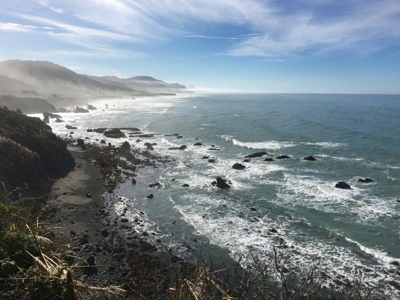 Much of the actual Lost Coast trail climbs through dark, dense forests, following canyons that run around two main streams. Once they reach a certain altitude, they go all the way back down, and end up at the beach, only to begin climbing again.