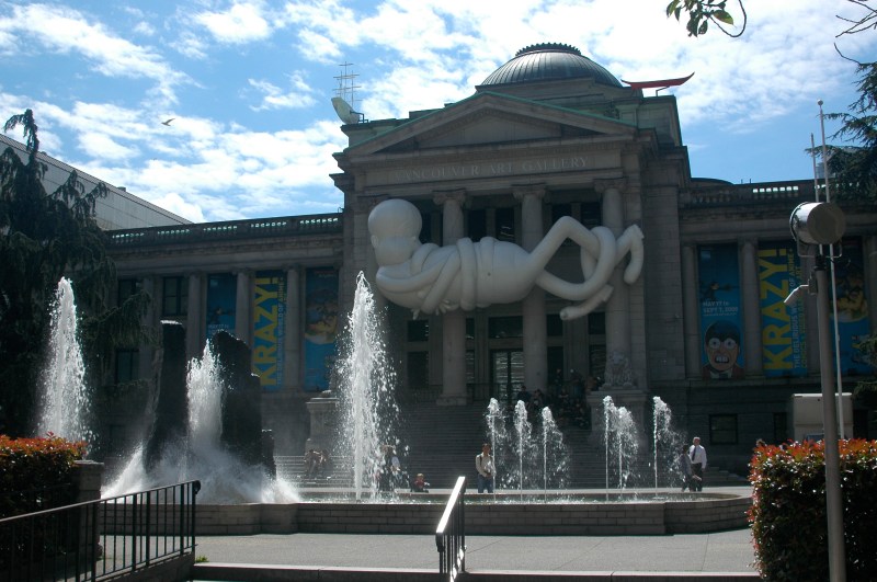 The somewhat strange looking piece of architecture below is the Vancouver Art Gallery. It’s one of the two musea which I really wanted to visit. The other one, the Museum of Anthropology, with a sizeable exhibition regarding First Nation people, unfortunately closed down for several months due to renovations.