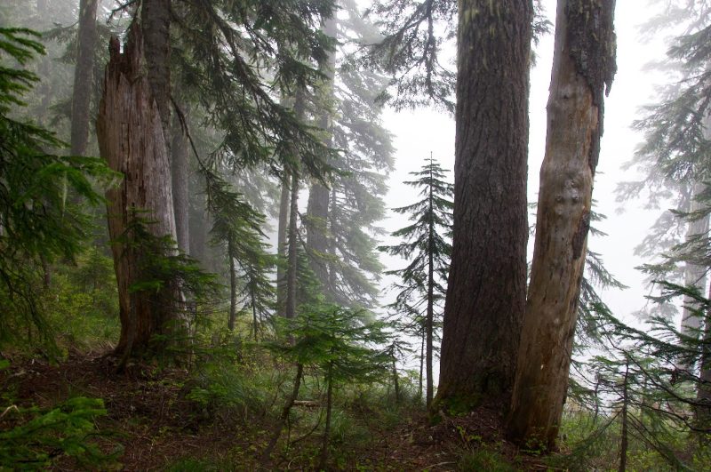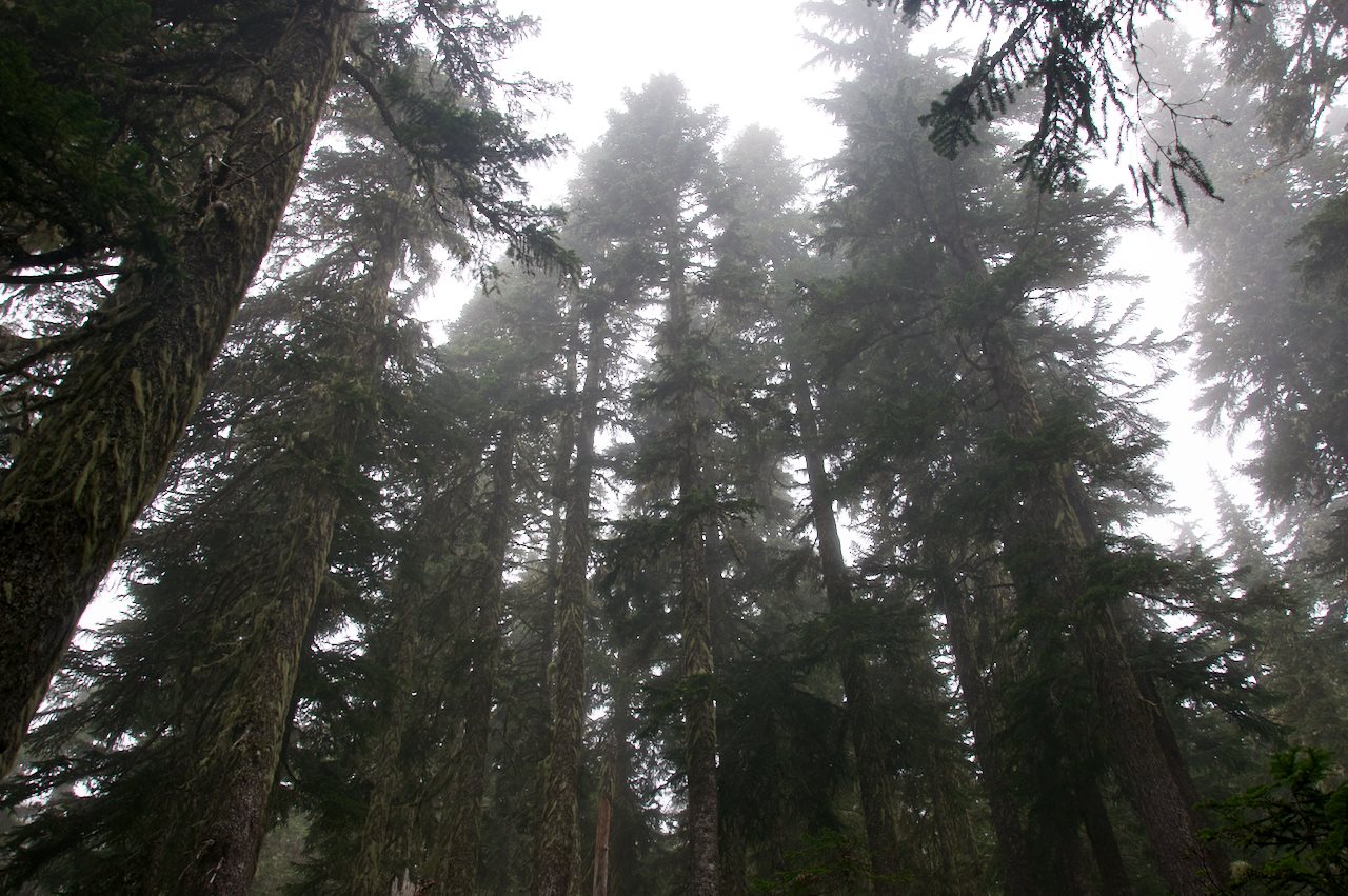 The trees in the wilderness are definitely not unusual for the Pacific Northwest. Due to its altitude at about 4000-6000 feet, the dominant species are all large firs, in particular the Pacific silver, Noble and Subalpine/Rocky Mountain trees.