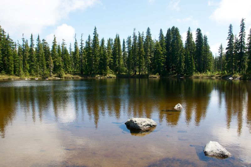 I didn’t quite realize how long the drive from Seattle would be, as you have to drive all the way down to Portland, trace the Columbia River, and then drive straight up along Forest Road 30 (the “wind river highway”) for a little over an hour. This gets you to the Thomas Lake Trailhead, where you leave your car behind and start hiking. A mile or so down the trail you enter the wilderness area. The area is very accessible and does not take much effort at all – since the road drops you off in the middle of dense forest, you can find pretty lakes as quickly as half a mile from the trailhead.
