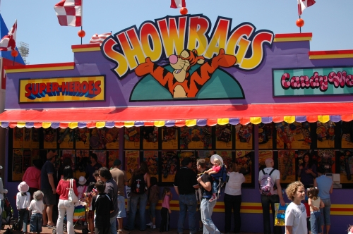 While I was on the train to the showgrounds, I heard kids around me yelling something like “I’ll get a big showbag this year, right dad?” and “Mom, dad said I can have a realllly big showbag!”. For me this was all fine, but it was as if I came from another universe cause I really couldn’t imagine what a showbag was.