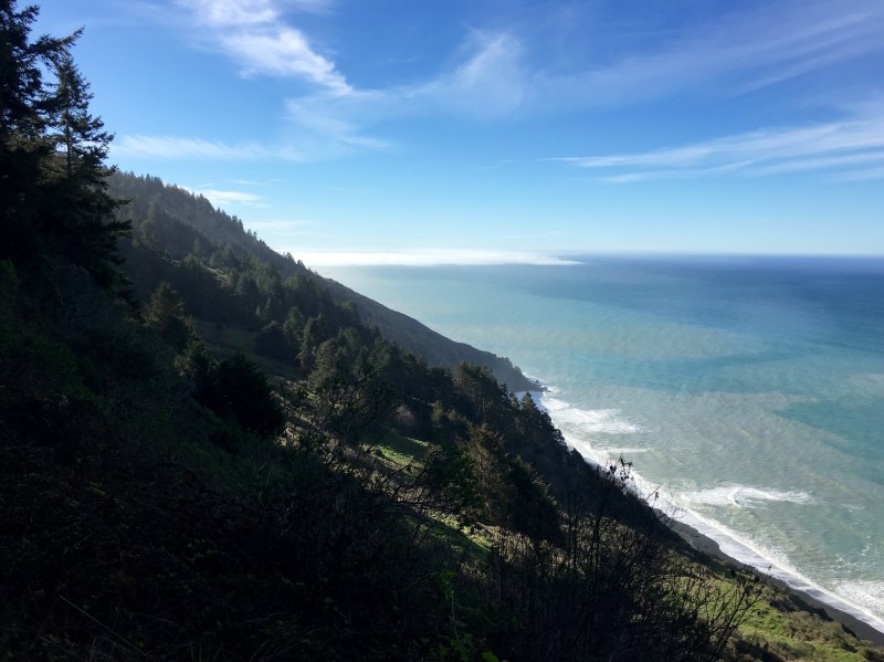 It only took me about six miles and 1500 feet of climbing to realize that I wasn’t on the Lost Coast trail, but on Hotel Gulch trail, which runs parallel to it and does go higher onto the ridges. Sadly, it doesn’t have any campgrounds until Wheeler, which was farther than I had planned to go that day.
