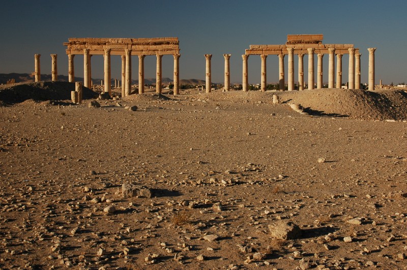 A beautiful row of columns in Palmyra. Luckily, this row is not the one flattened by ISIS, but a similar nearby column was.