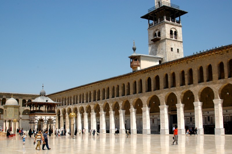 Another view of the Great Mosque, also known as the Umayyad Mosque, as it was built by adherents of the Umayyad caliphate, using its traditional building style, incorporating minarets and mihrab’s, the typical semi-circular niches in the wall that indicate the direction of the qibla in Mecca.